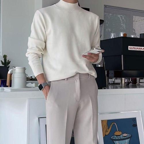 [모노폴로지]1+1 남자반목폴라 남성얇은니트 정장니트 반폴라