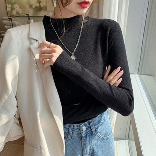 레이디 반폴라 캐주얼 하이넥티 소프트한스키니 단색 니트웨어 WFJIVXS
