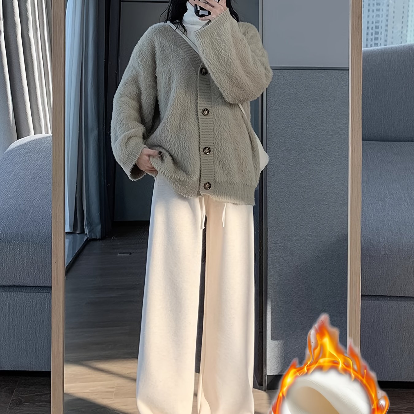 TEMU 여성용 하이웨이스트 와이드 레그 팬츠 - 조절 가능한 드로우스트링 허리, 플레어 디자인으로 키 올리는 겨울용 캐주얼 스타일 (기계 세탁 가능, 단색)|냉장고바지|옷|바지