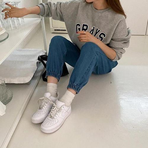 [옷자락]여성 배기핏 겨울 캐주얼 트레이닝 조거 데님 밴딩 팬츠