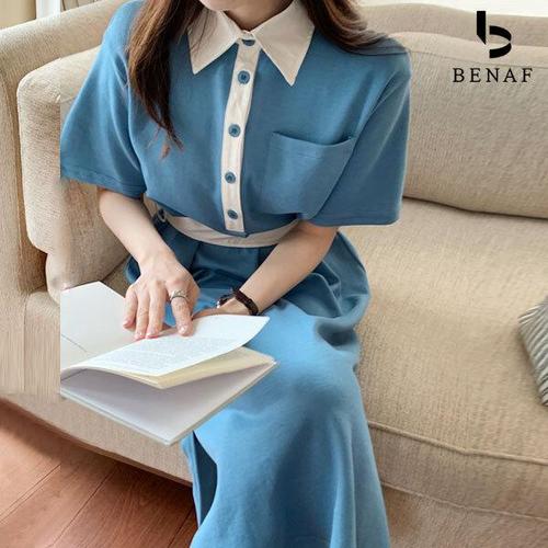 [베나프]포켓 카라 배색 롱원피스_BG2OP007
