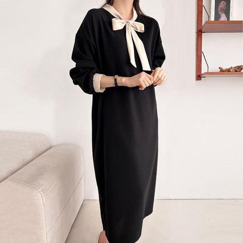 [베나프]빌리브 배색 타이넥 롱원피스_FG1OP002