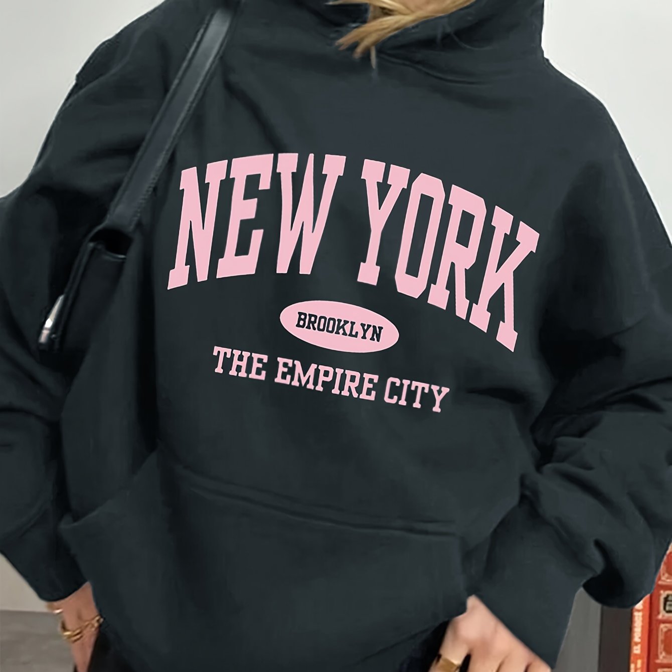 TEMU 여성용 후드 스웨트셔츠, 간편하고 캐주얼한 디자인, 레터 프린트 및 대비되는 색상, 가을 및 겨울에 완벽하며 따뜻함을 더함