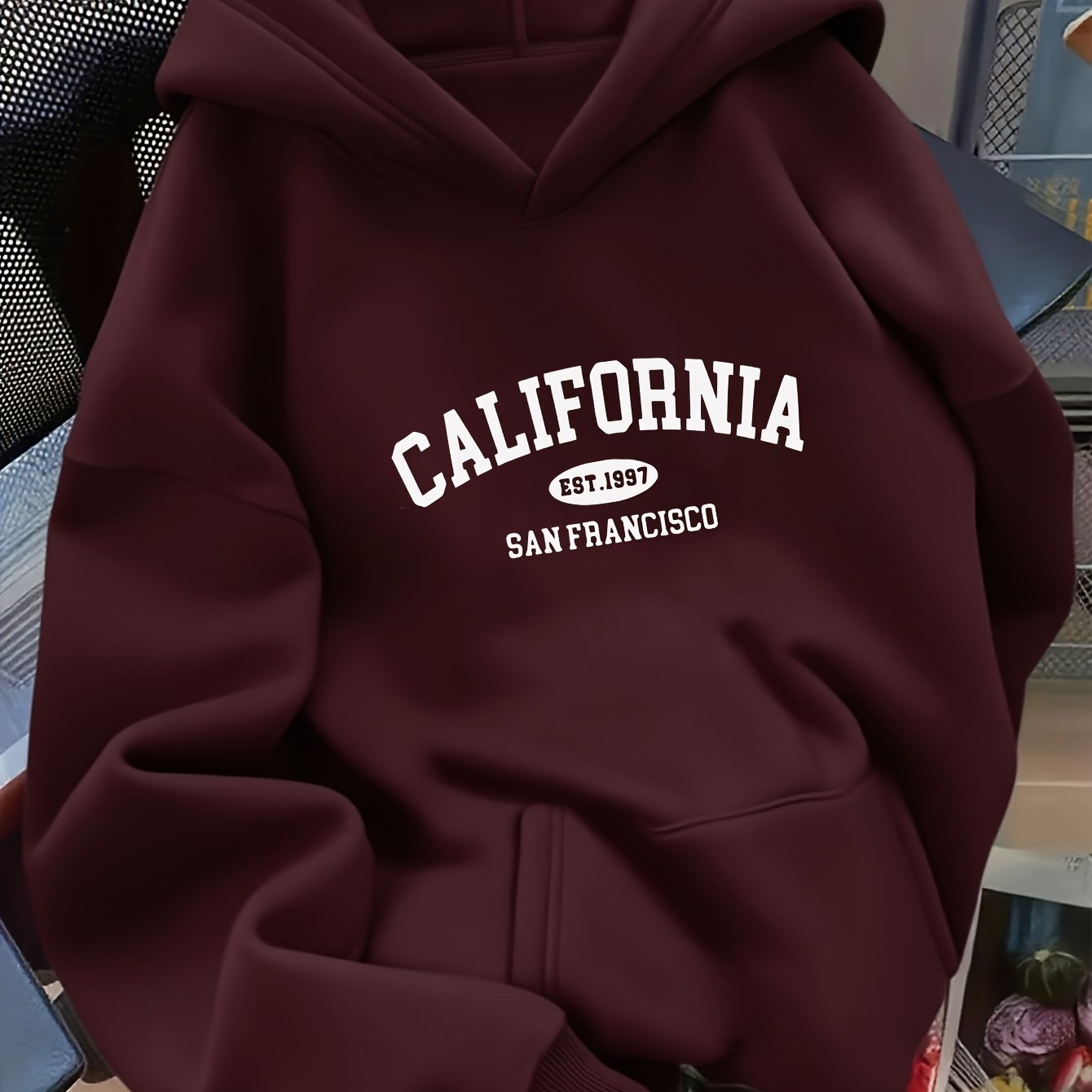 TEMU D92-원 루즈 후드 스웨트셔츠, 패셔너블 다용도 캘리포니아 그래픽 프린트 후드 스웨트셔츠, 봄과 가을, 여성용 L15117