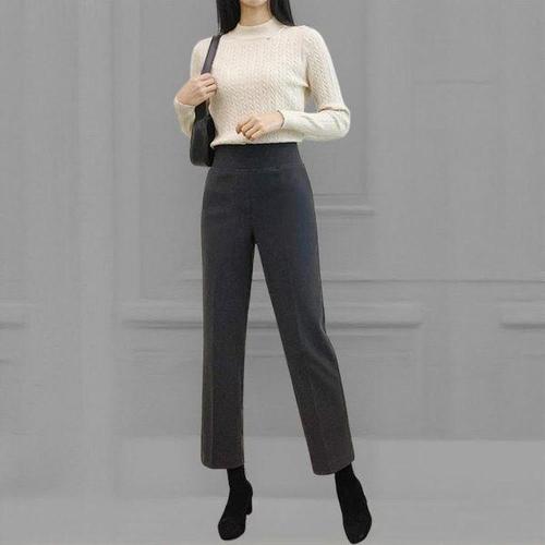 [신상오픈런]여성용 무지 빅밴드 스판 일자 슬랙스 오피스룩