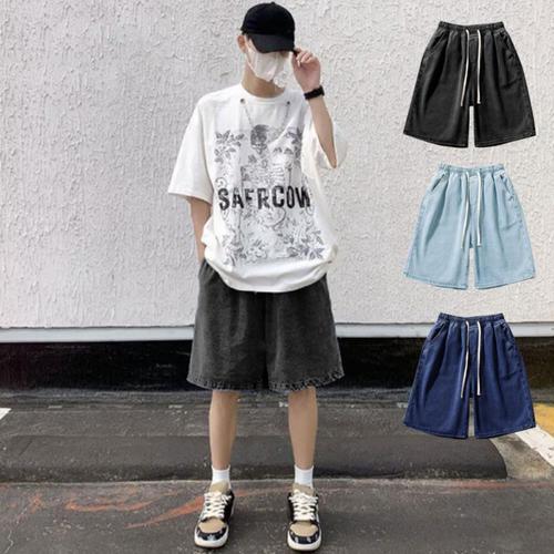 [옷자락]남성 캐주얼 밴딩 스트링 포켓 진청 데님 반바지