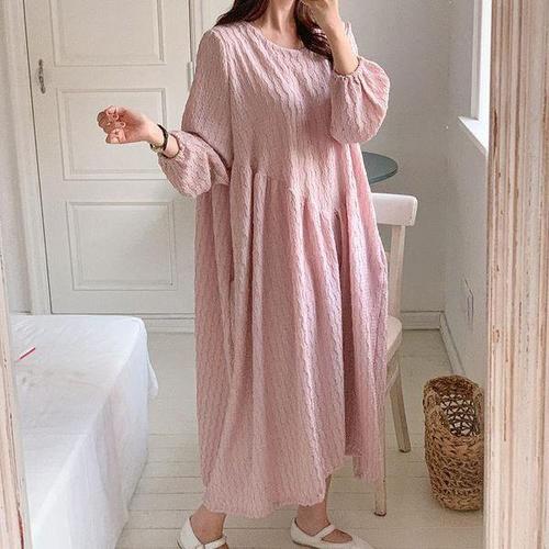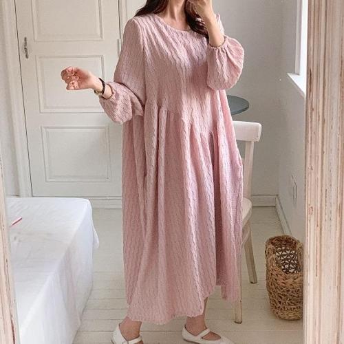 [다잇템][다잇템] 여자 분홍색 밴딩퍼프 링클 잔주름 큰사이즈 롱원피스_23198621_588872