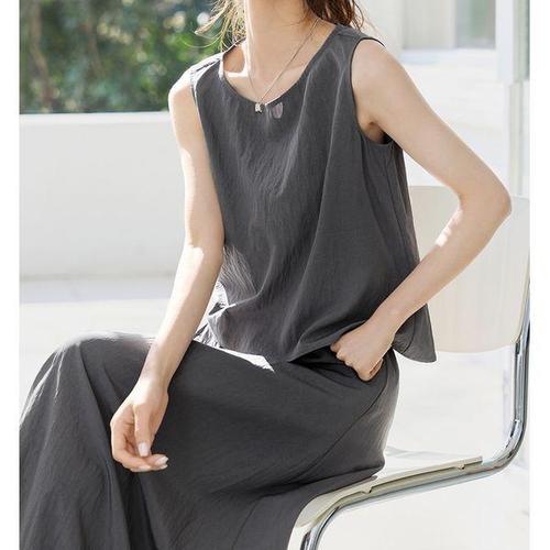 [패션시그널]민소매 블라우스+밴딩 스커트 세트 5B6779
