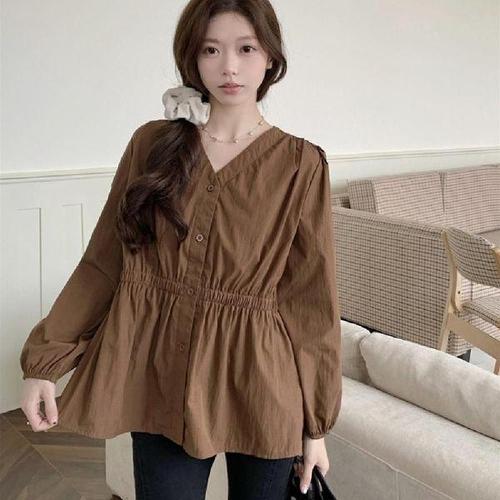 [에이치플러스몰]밴딩 브이넥 블라우스 데이트 소개팅