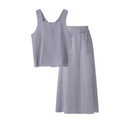 [나인식스뉴욕]스트라이프 나시 블라우스 밴딩 스커트 셋업 (NO2OW031L0)