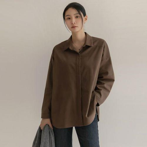 [엘리시아]레언 히든 단작 밴딩 기모 블라우스