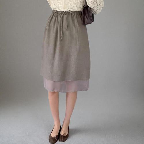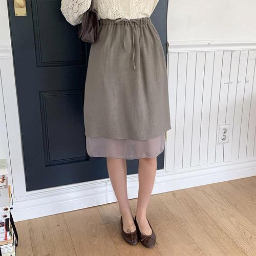 [신상오픈런]여성 울 레이스 레이어드 미디 스커트 스트랩 밴딩