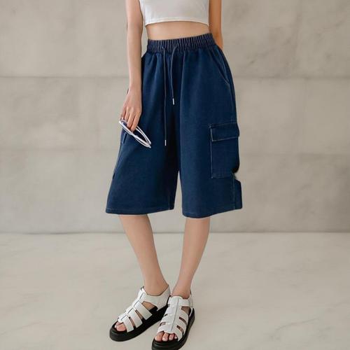 [다잇템]여자 넓은 여름쇼츠 논스판 백밴딩 청반바지