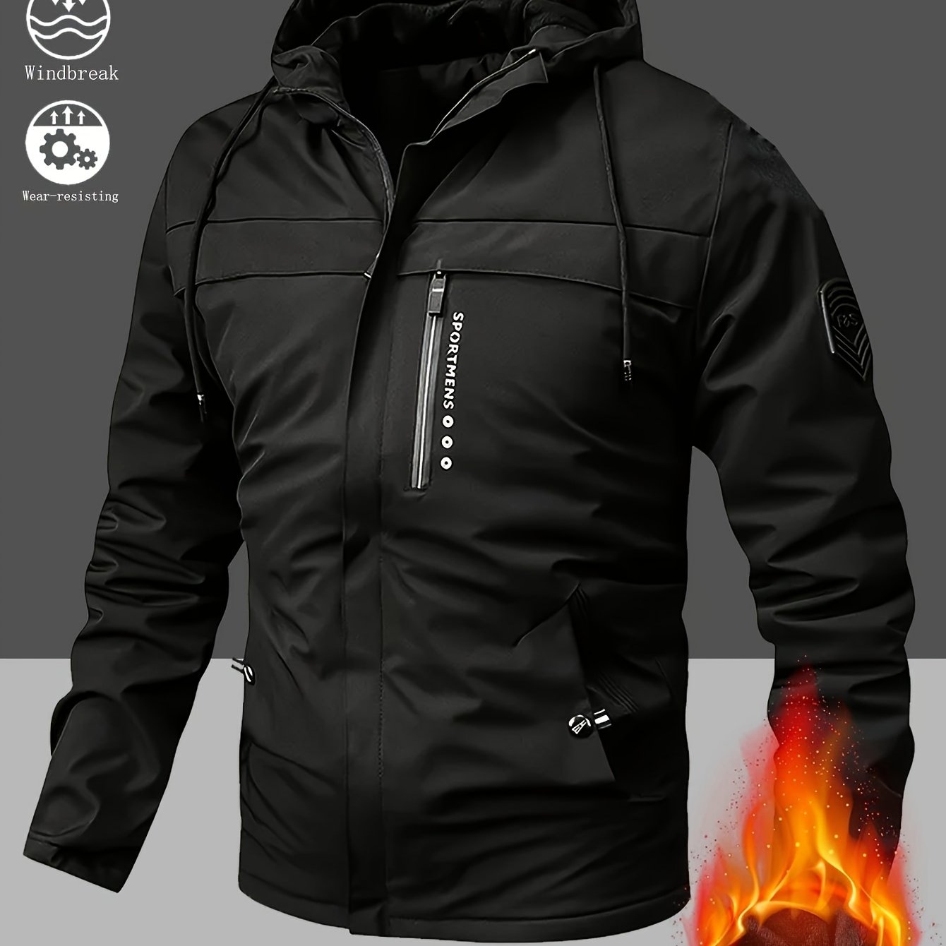 TEMU 남성용 패션 아웃도어 솔리드 컬러 디테일 가슴 프린트 후드 긴팔 안감 자켓 - 데일리 웨어