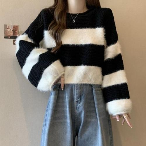 [엄지척]여성 스트라이프 벌룬소매 크롭 니트_19804545_667501