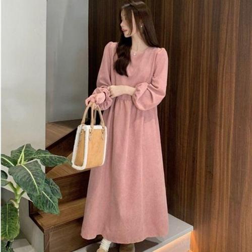 오버핏 벌룬소매 이지골덴 롱드레스 WFK21P5