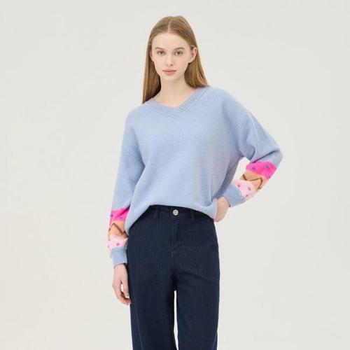 지니우우 J0243A 소매 벌룬 V넥 데일리 니트