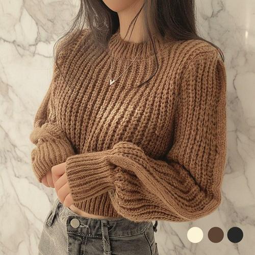[미라클세븐]여성 루즈핏 크롭 라운드 니트 벌룬소매 스웨터