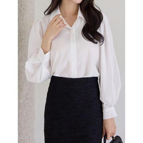 루스리더 여성 심플 퍼프 벌룬소매 셔츠 E880