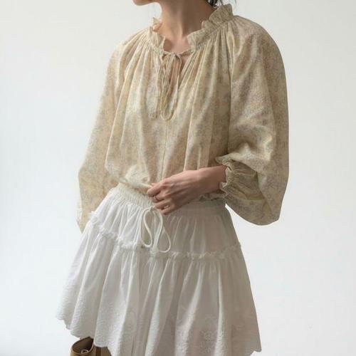 블라우스 여성 무늬 꽃 플라워 벌룬 소매