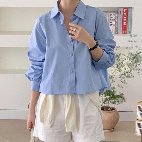 |CDH3BDD|흰블라우스 소매셔링 벌룬 아방핏 무지남방 여성봄코디