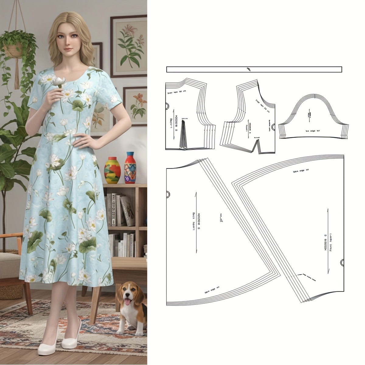 TEMU 여성용 우아한 플로럴 프린트 롱 스윙 드레스 재봉 패턴 - S-XL 사이즈, 재봉 애호가를 위한 의류 용품, 종이 재질