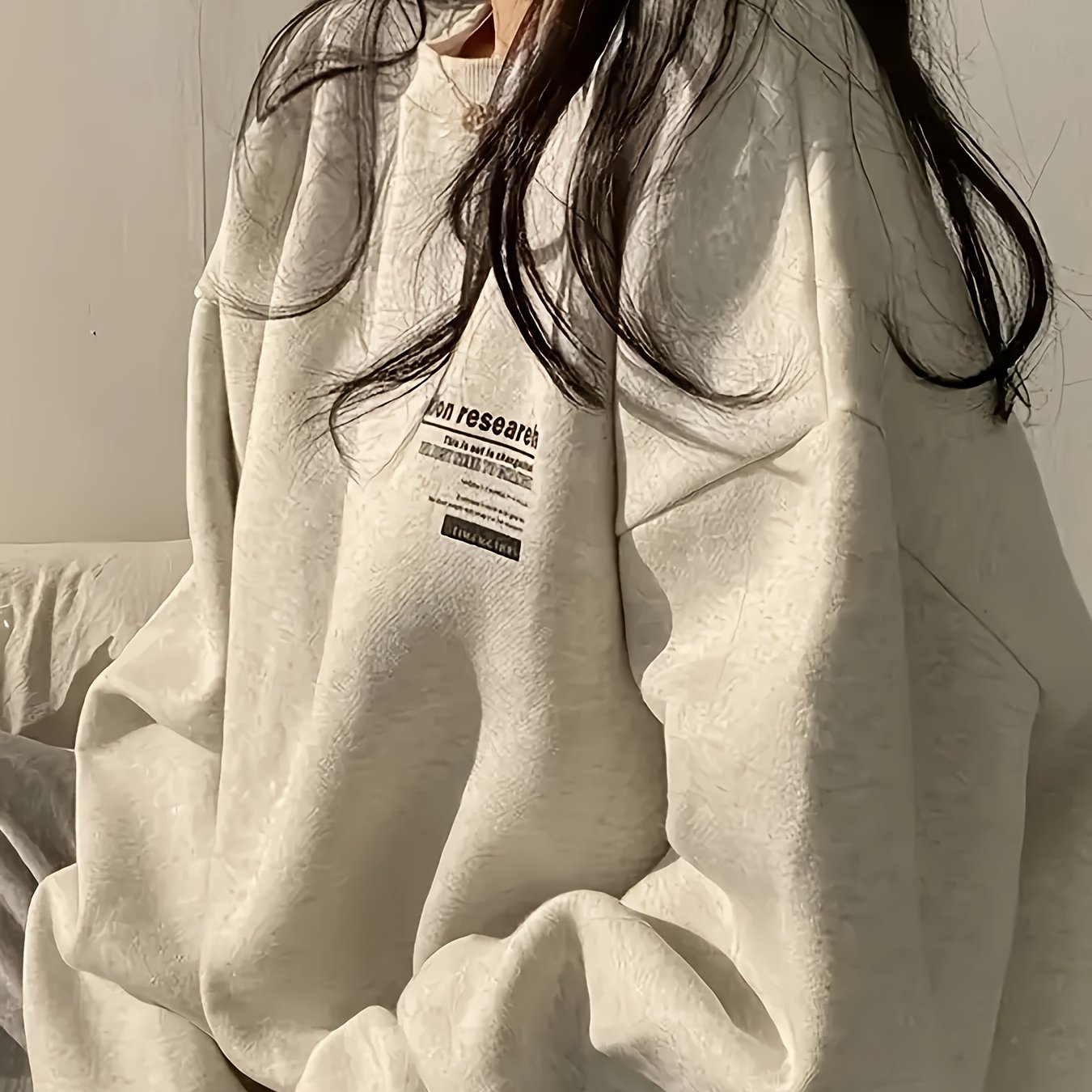 TEMU 1pc Y2K 시크한 여성 캐주얼 풀오버 스웨트셔츠 - 약간의 신축성이 있는 폴리에스테르 니트 직물, 알파벳 모티프, 크루 넥, 롱 슬리브, 올 시즌을 위한 루즈 핏