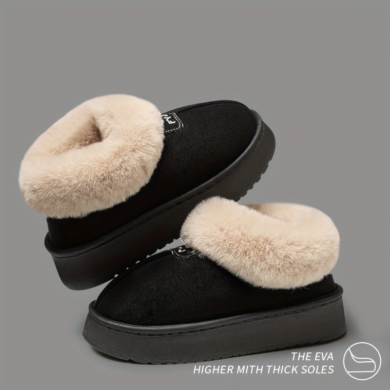 TEMU 여성용 겨울 슬립온 플랫폼 뮬, 플러시 안감 & 인조 모피 칼라 - 포근한 브라운핑크/ - 부드러운 패브릭 갑피 & 고무 밑창 - 따뜻한 여성용 겨울 신발