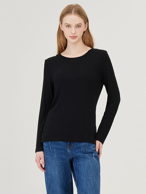 [베네통] 배색 라인 버튼 긴팔 티셔츠_BATS91541BK