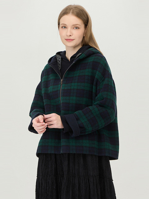 [베네통]칸 체크 후드 숏 코트(BACTA4561)_DG