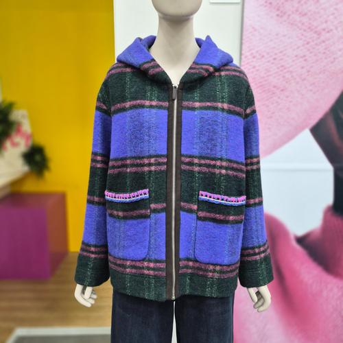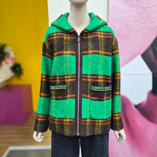 [베네통]베네통 칸 체크 후드 숏 코트 BACTA4561 MU