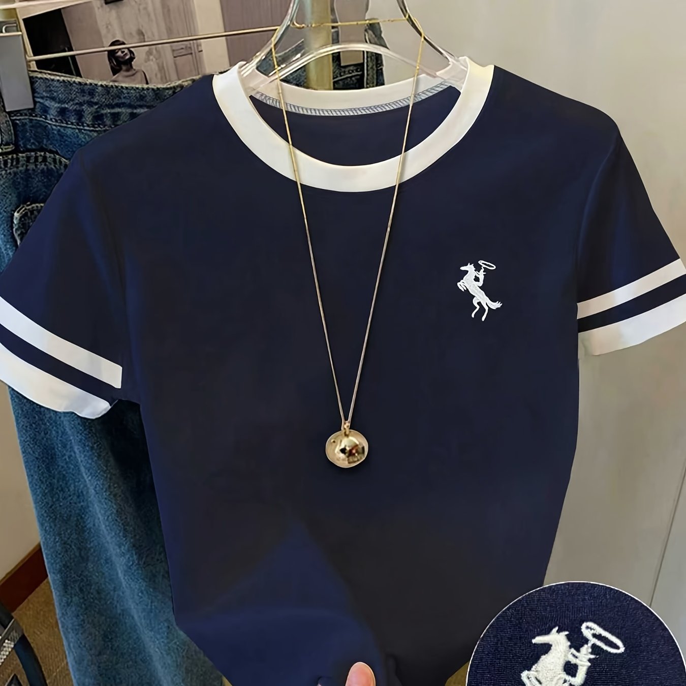 TEMU 사계절에 적합한 시즌 티셔츠, 컬러 블록 반팔 자수 티셔츠, 캐주얼하면서도 우아한 Y2K 스타일, 외출, 통근, 파티, 소셜 이벤트, 휴가, 생일 축하, 크리스마스, 새해에 완벽