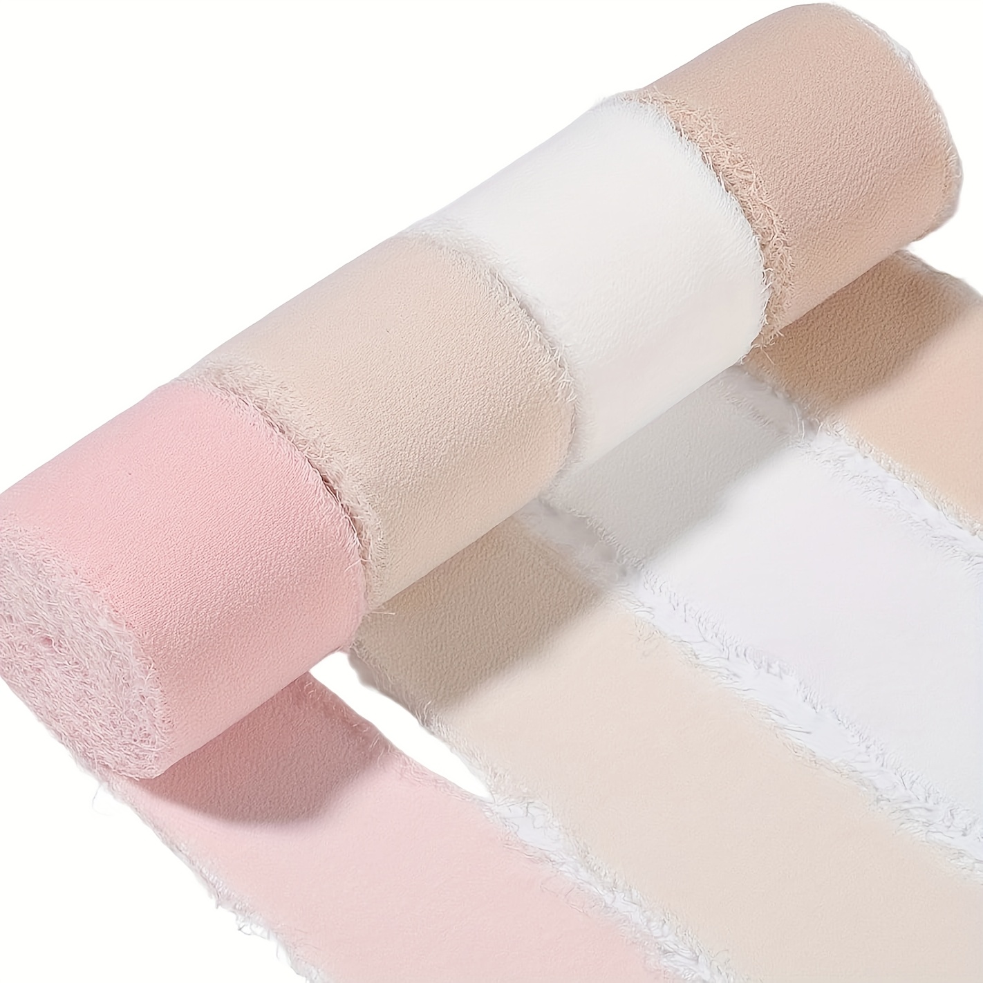 TEMU 프루디우트 소프트 파스텔 쉬폰 리본 4롤 - 핑크, 크림, 베이지, 화이트 | 파스텔 핑크 & 크림 프릴 텍스처 리본, 선물 포장, 웨딩 데코, 샤워 파티용 | 1.5인치 폭 x 5.5야드 (4롤) | 리본