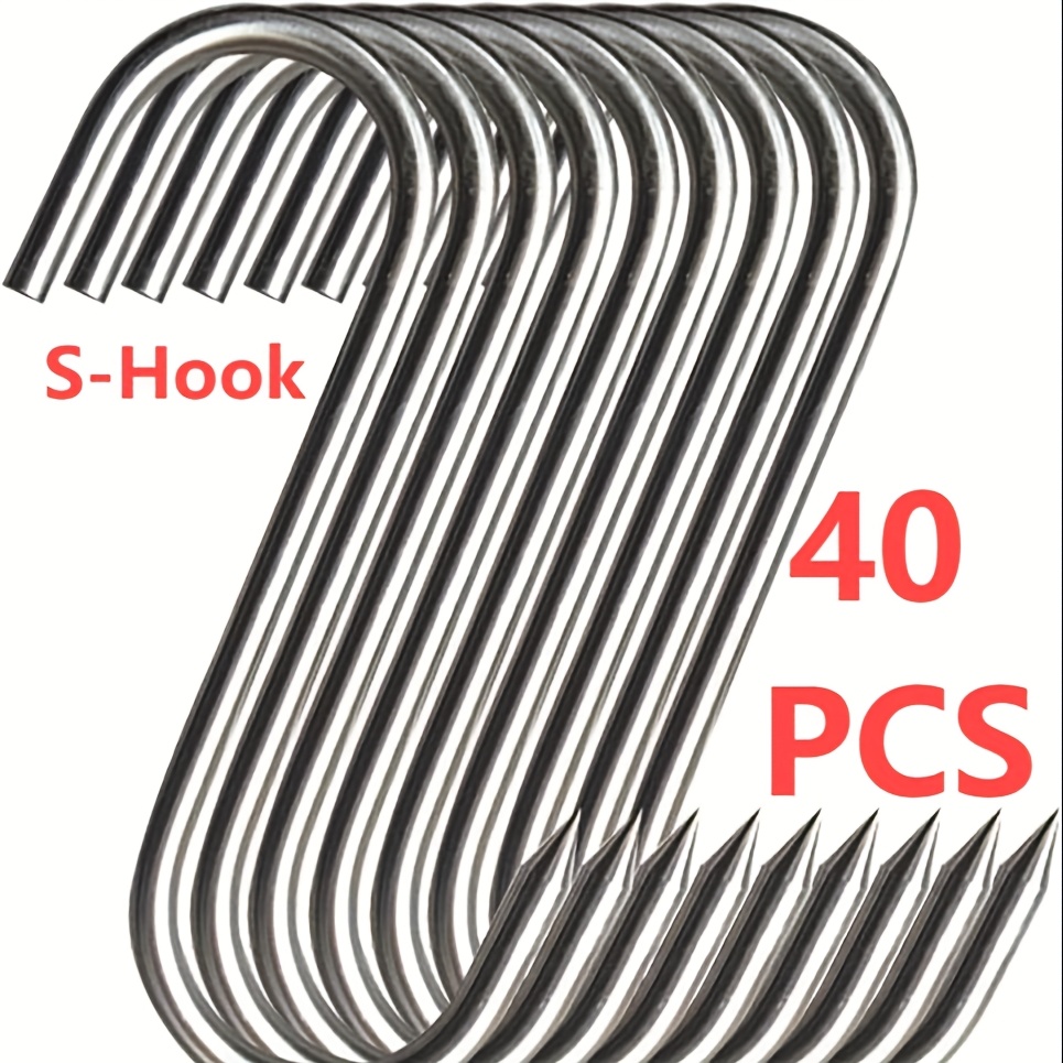 TEMU 40개 5.5인치 스테인레스 스틸 S-후크 세트, 현대적인 벽걸이 S-후크, 날카로운 디자인, 쉬운 설치, 가정용, 레스토랑, 주방, 냄비, 팬, 가방, 컵, 가정 장식, 금속 재질