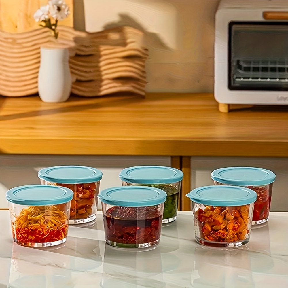 TEMU 뚜껑이 있는 6개 세트 유리 주방 신선 유지 상자, 냉장용 양념 및 소금 채소용 방수 라운드 보관병