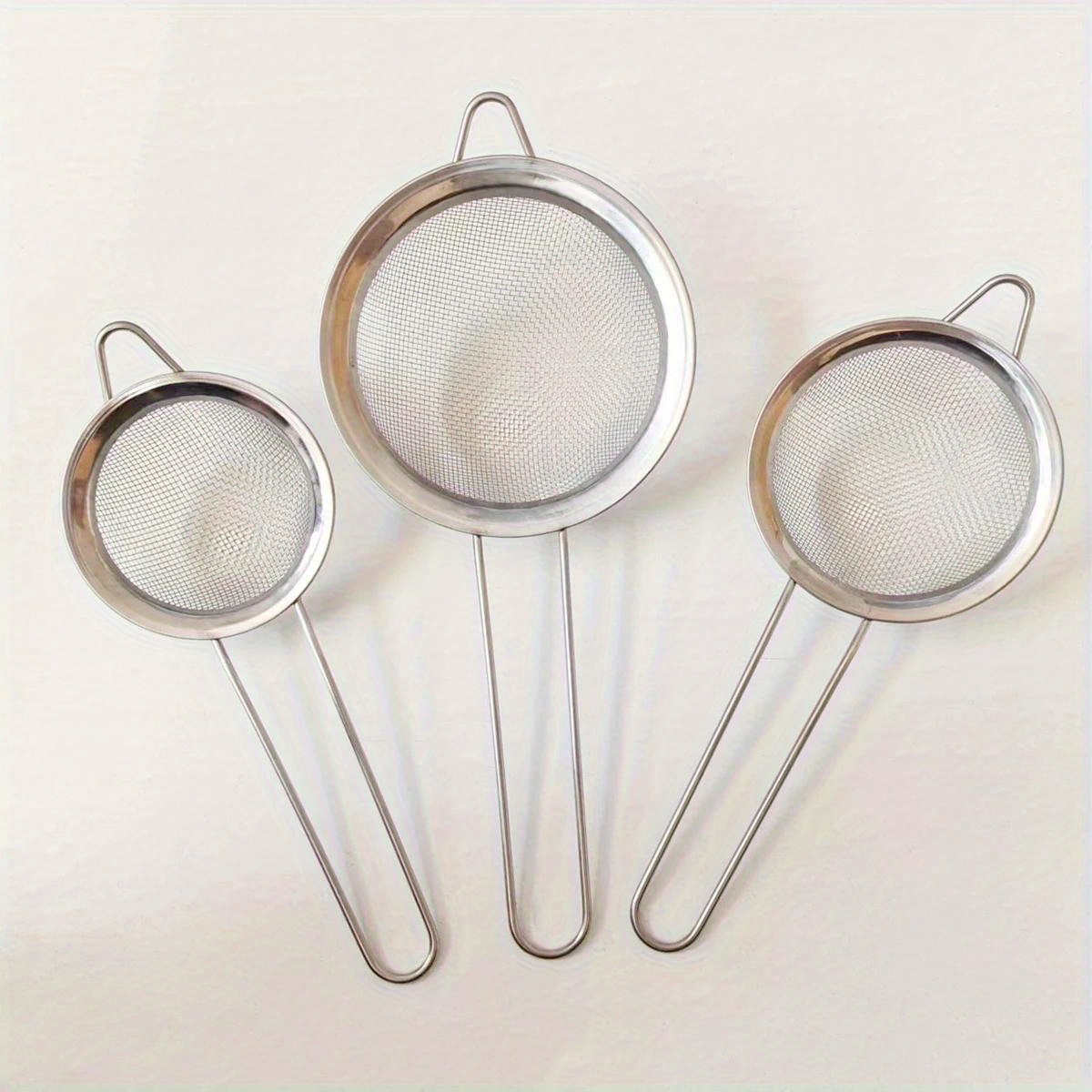 TEMU 3피스 스테인리스 스틸 미세망 체 세트 (소/중/대 사이즈), 헤비듀티 핸들 & 후크 - 주스, 블렌딩, 두유, 파스타용 내구성 강한 주방 체 세트 (냄비/팬 호환)