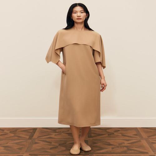 [Royal British] 베이지 케이프 벨티드 5부 소매 원피스 (DLDR5B303I2)