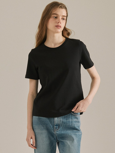 [베이직하우스] 면30수 레귤러핏 라운드 무지반팔티셔츠 LATS0126