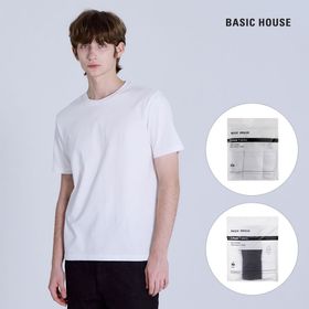 베이직하우스 면16수 고밀도 라운드 반팔티셔츠 2팩