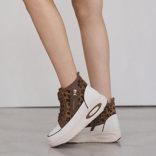[신꼬가]소가죽 호피 레오파드 발목 하이탑 스니커즈