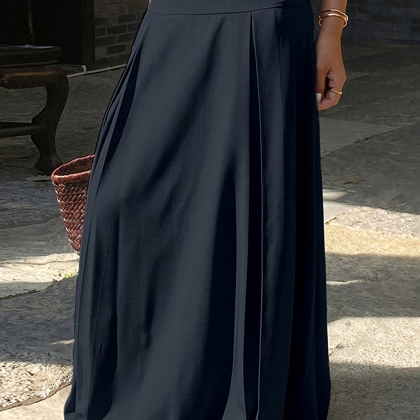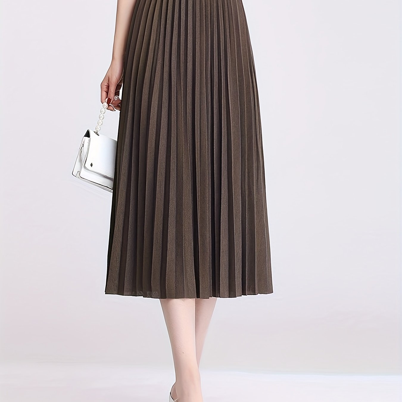 TEMU 여성 캐주얼 다용도 단색 A라인 플리츠 롱 스커트
