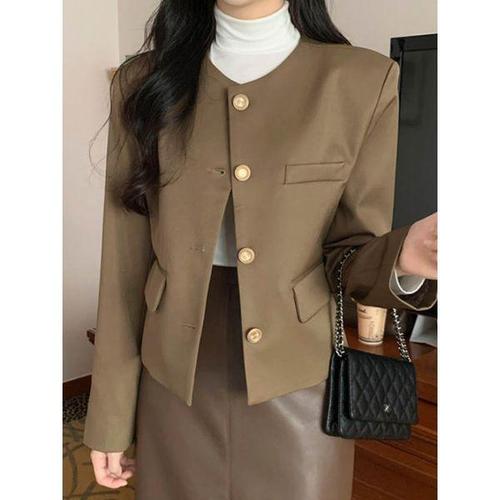 [디애이치]벨라모 골드버튼 노카라 자켓 3COLOR