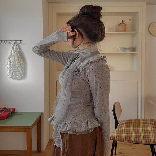 [플로렌]벨리 그레이 러플 반팔 티셔츠