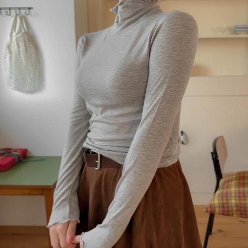[엘루이즈][엘루이즈] [국내제작] 벨리슈 기모 스판 웨이브 목폴라 티셔츠(5color)