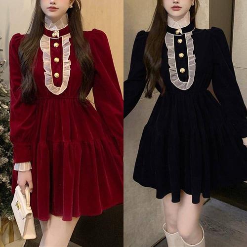 [셀럽하우스]여성 ROOH7216 벨벳 데일리 고급 미니원피스 보온 우아한 프릴