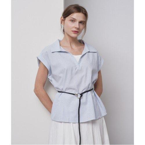 [탱커스]스트라이프 벨트 세트 레이어드 카라 반팔 블라우스 (TX2BL064L0)