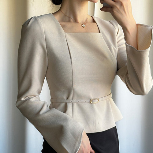 지고다그 여성용 교체철용 허리벨트 셔츠형 블라우스 긴팔 루즈핏 심플 모던 오피스룩 상의 ZK6262