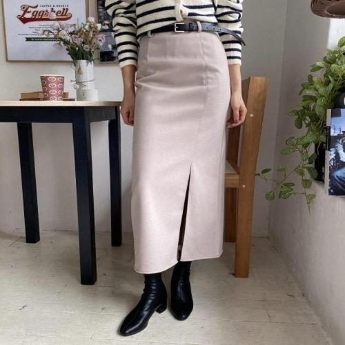 [신상오픈런]|KHD223B|여자 H라인 베이직 앞트임 롱스커트 벨트 세트_19297962_597559
