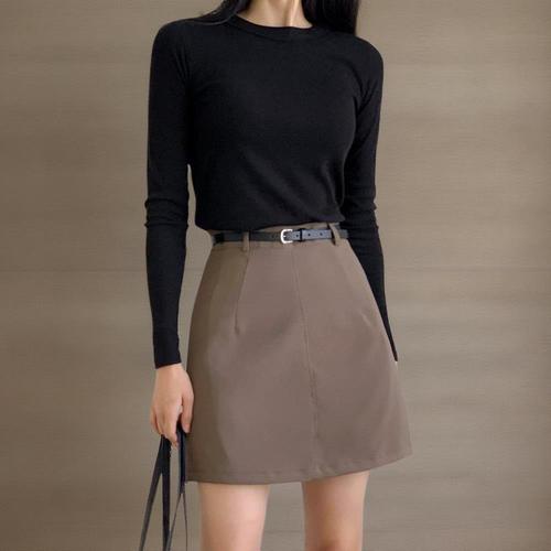 [미라클세븐]여성 무지 컬러 스판 A라인 벨트 미니 스커트