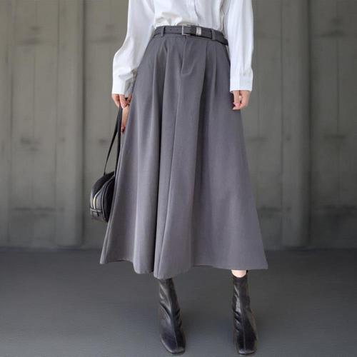 [미라클세븐]여성 가을 골덴 롱 플레어 스커트 벨트 포함